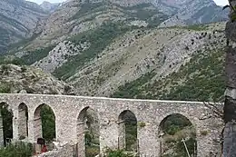 The Bar Aqueduct (Montenegrin: Барски аквадукт, romanized: Barski akvadukt) is a stone aqueduct located on the northern side of Stari Bar Fortress, 4 km north of the town of Bar in Montenegro. The Bar Aqueduct is the only remaining aqueduct in Montenegro, and one of the largest and best preserved aqueducts from the three remaining ones in the former Yugoslavia, which include the Diocletianus Aqueduct near Split, Croatia and the Skopje Aqueduct in North Macedonia.