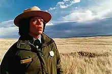 In March, 1989, Sutteer entered the executive management training program under Lorraine Mintzmyer, the park service regional directory in the Rocky Mountain region, in March 1989. Mintzmyer offered Sutteer the superintendent position at Little Bighorn "because of the skills she demonstrated".[1] Sutteer became the second Native America woman superintendent in the National Park Service on July 16, 1989.[2][lower-alpha 2]