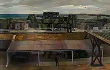At the outbreak of the Second World War, Freedman was appointed as a full-time salaried war artist by the War Artists' Advisory Committee and sent to France in April 1940 to record the work of the British Expeditionary Force.[7][16] He painted a number of works there but was frustrated by a perceived lack of support, particularly transport provision.[17] He was evacuated to England in May 1940 and worked on coastal defence subjects in Sheerness and the Isle of Sheppey.[17] His full-time contract with WAAC ended in February 1941 after which WAAC purchased individual pieces from him but also offered him several short-term contracts with the Admiralty.[17] By July 1941, Freedman was on board HMS Repulse, and produced the painting 15-inch Gun Turret, HMS Repulse and several individual portraits of her crew.[6][14] The gun turret picture became a print, produced by the Baynard Press for the National Gallery.[4] At the end of 1942 he began an album of portraits of aircraft factory workers and then spent time aboard HMS Tribune, which resulted in another album of portraits and the painting Interior of a Submarine(1943), which was briefly displayed at the National Gallery before being removed from view under wartime censorship regulations.[17] The painting is now in the permanent collection of the Tate.[18] In June 1944 Freedman went to Portsmouth, before travelling to France after the D-Day landings. There he recorded scenes around the landing beaches and at the invasion headquarters, but in July was taken ill and sent to hospital in Liverpool.[19]