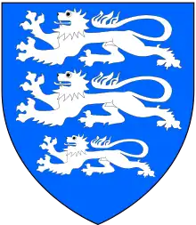 From about 1200 the manor of Clifton in Staffordshire (which later took its distinguishing suffix from its lords) was held by the de Camville (or de Canville) family, at least until 1338, which originated probably at the Normandy manor of Canville-la-Rocque, in La Manche (not at Canville-les-Deux-Églises in the Pays de Caux).[3] The arms of the de Camville family were: Azure, three lions passant argent.[4] The descent in the de Camville family was as follows: