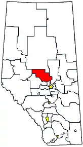 The 2010 electoral boundary re-distribution saw the boundaries revised to include a portion of land from the Lesser Slave Lake electoral district. The portion of land in the district that was part of Sturgeon County was transferred to Spruce Grove-Sturgeon-St. Albert.[2]