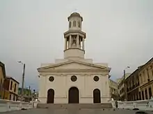 Located in southern Valparaíso, the historic area is protected by the municipality and UNESCO.[1] Two buildings within the area are the Mercado Puerto (English: Port Market), built in 1924, and Iglesia de la Matriz (English: Church of the Matrix).[2] Mercado Puerto is located near the site where Juan de Saavedra landed in 1543, at what is now Plaza Echaurren.[3] Between 2002, when the building was restored, and the 2010 Chile earthquake, the mercado was the site of several seafood restaurants.[4][5] Near it and Plaza Wheelwright is the Iglesia de la Matriz,[4] an adobe church, known for its octagonal steeple, that was built in 1837. It is the site of the first church built for the city in 1559.[3][5] The king and queen of Spain donated a 17th-century Spanish carving of Christ in Agony to the church.[5]