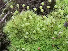 Bartramia pomiformis, the common apple-moss,[1] is a species of moss in the Bartramiaceae family. It is typically green or glaucous in hue, although sometimes it can appear yellowish. The stems extend from a half cm to 8 cm, with narrowly lanceolate to linear-lanceolate leaves 4 – 9 mm long.[2] The leaves have a nerve and are toothed. They are curled when dry but stick out when moist.