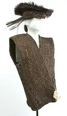 The Baru Lema'a is made in the form of a vest. It consists of the braided, coarse fibers of the Iluk plant. The fibers are braided and the strands are connected again side by side. It has neither sleeves nor a collar. In the neck area a surface is protruding which is similar to two connected circles. This serves to protect the neck from blows. The vest is heavy and inflexible. It is used by ethnic groups from Indonesia.[1]