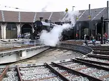 The historic Delémont roundhouse is located in Delémont. This former locomotive depot/roundhouse with a turntable is now the home of the Historische Eisenbahn Gesellschaft (Historical Railway Company, HEG), which focuses on the rescue, restoration and operation of historic Swiss rolling stock. The Delémont–Delle railway branches off at the station, passing through Porrentruy and Boncourt. It has been served hourly by the S3 service of the Regio S-Bahn Basel since December 2004.
