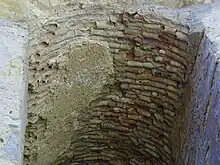 The most important element of the known appendices is located in the southwest : It is a subterran rotunda, having an interior diameter of 9.15 metres [6] with a cupola. Two symmetrical stairs,[7] vaulted and in square[4] permit the access ; the ceiling is still partially covered with tubes of terracotta. The corridor is 10.40 metres long and forms an angle before giving access to the underground room.[7] In the past, one corridor permitted entry while the other permitted exit according to Delattre and based on the interpretation of a mosaic found nearby.[8]