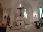 The center of the crypt contains the altar which preserves the remains of Saint Berniero in an urn. Above it is a linear crucifix from the 17th. On the left side of the apse is a statue of St. Fidelis of Sigmaringen made out of wood, created by the sculptor Giacometti Colombo in 1690. The statue holds a crucifix in the left hand while his right hand points to it with his index finger.[5]
