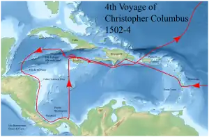 - ↑ Morison, European Discovery, p.24 equates Puerto de Bastimentos with Nombre de Dios, quoted in Columbus on Himself, p.223 (note), By Felipe Fernández-Armesto
