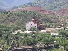 Batopilas (Spanish: [batoˈpilas] ⓘ) is a small town, and seat of the surrounding municipality of the same name, in the Mexican state of Chihuahua, located along the Batopilas River at the bottom of the Batopilas canyon, part of the Copper Canyon. As of 2010, the town of Batopilas had a population of 1,220.[1] Its elevation above sea level is 578 metres (1,896 ft). The town is situated in a narrow valley, bordered by steep canyon walls.[2] The government of Mexico declared it a Pueblo Mágico on October 19, 2012.[3]