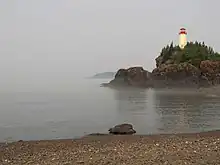 Battle Island Light is a lighthouse on the Canadian shore of Lake Superior. It is located on the westerly point of Battle Island, 28.5 miles (45.9 km) east-northeast from Lamb Island Light.