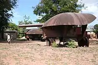 The first leg of Mimi and Toutou′s 10,000 mi (16,000 km) journey was completed after 17 days at sea and their arrival at the Cape. From Cape Town, they and the men of the expedition travelled north by railway through Bulawayo to Elisabethville, where they arrived on 26 July.[20][21] After travelling to the railhead at Fungurume, they were detrained and dragged 146 mi (235 km) through the bush by teams of oxen and steam tractors to the beginnings of the railway from Sankisia to Bukama.[22][23] At Bukama, the boats and stores were unloaded and prepared for a voyage down the Lualaba River, where despite running aground several times and being forced to take passage on a Belgian river steamer they completed their journey after sailing through Lake Kisale and arrived at Kabalo on 22 October.[24][25] From there, a small railway took them to just short of the Belgian port of Lukuga, on the shore of Lake Tanganyika.[24] Here Spicer-Simson met the Belgian army commander, Commandant Stinghlamber, and the naval commander, Commandant Goor, and preparations were made to launch Mimi and Toutou and to seek out the Germans.[26]
