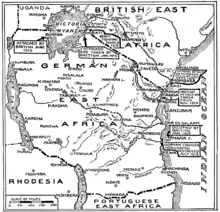 ![]() Lake Tanganyika in 1914, contested by Britain, Belgium and Germany | |||||||