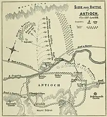 ![]() Map of the siege and the battle of Antioch in 1097 and 1098 (1898) | |||||||