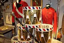 Side-drums of the 34e Régiment d'Infanterie displayed at Cumbria's Museum of Military Life, Carlisle Castle