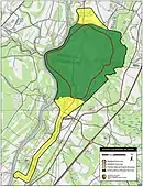 The Battle of Averasborough was fought on the grounds of Oak Grove, near Erwin, North Carolina.[1] Lebanon was used as a hospital.[2] Prior to the battle, Union soldiers raided the Ellerslie Plantation for supplies and quartered troops in the plantation's main house.[3] The Averasboro Battlefield Historic District was listed on the National Register of Historic Places in 2001.[4] The American Battlefield Trust and its partners have acquired and preserved more than 568 acres (2.30 km2) of the Averasborough battlefield as of mid-2023.[5]