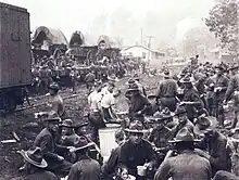 For five days from late August to early September 1921, some 10,000 armed coal miners confronted 3,000 lawmen and strikebreakers (called the Logan Defenders)[5] who were backed by coal mine operators during the miners' attempt to unionize the southwestern West Virginia coalfields when tensions rose between workers and mine management. The battle ended after approximately one million rounds were fired,[6] and the United States Army, represented by the West Virginia Army National Guard led by McDowell County native William Eubanks,[7] intervened by presidential order.[8]