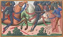 Barbazan was killed (he was later buried on the orders of Charles VII in the Basilica of Saint-Denis, the necropolis of the kings of France). René d'Anjou, however, fell into the hands of Toulongeon, who passed him on to the Duke of Burgundy. His captivity was to be long and ultimately expensive.[3]
