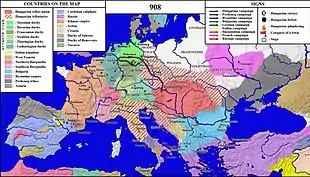 The Battle of Eisenach in 908,[1] was a crushing victory by a Hungarian army over an East Frankish army composed of troops from Franconia, Saxony, and Thuringia.
