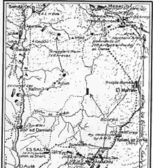 By 26 September the Fourth Army's garrison at Amman (less the rearguard captured at Amman) had not been "heavily engaged,"[8] and "was still intact as a fighting force even though it was in rapid retreat" north along the Hejaz railway and Pilgrims Road, many miles to the east of the Jordan River towards Damascus.[9]