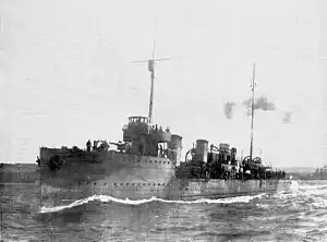 The Battle of Kirpen Island was a small naval battle fought during the Black Sea campaign of World War I. On 29 November 1915 the German U-boat SM UC-13 was shadowing five Russian merchant ships when she ran aground off the mouth of the Sakarya River in poor weather.[1] Admiral Wilhelm Souchon, the German commander of the Ottoman Navy sent two gunboats to recover the wreck. During the following cruise, the three Russian Derzky-class destroyers Derzky, Gnevny and Bespokoiny encountered the gunboats Taşköprü and Yozgat. In the ensuing combat the Russian gunners fired accurately and quickly sank both of the gunboats off Kefken Island on 10 December 1915.[1][2]
