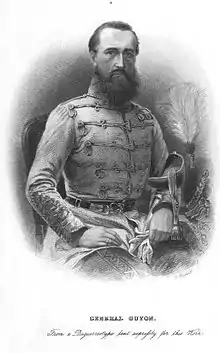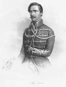 General Richard Guyon sent a portion of his infantry towards Szeghegy, in order to attack Jelačić's troops from the side, giving the leadership of the right wing to colonel Ágoston Tóth, he taking the lead of the left wing.[6] In addition to the problems suffered on the battlefield, Jelačić was informed by his rearguards that four companies of Hungarian hussars, sallying from Feketehegy, approached towards the ammunition reserves of the Austrians, causing them to flee to Verbász. The Austrians were able to force the hussars to retreat to Feketehegy, only by sending four dragoon companies and a battery against them.[6]