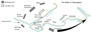 The Battle of Minatogawa was a major defeat for the Imperial loyalists but became famous in Japanese mythology for the loyalty displayed by Kusunoki to the Emperor in the face of certain death and defeat.[2]