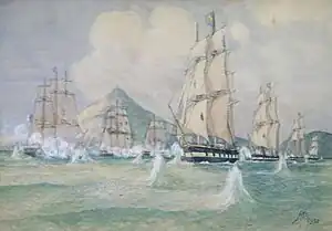 The naval Battle of Montevideo (Portuguese: Batalha Naval de Montevidéu) of 21 October 1823 formed a part of the Siege of Montevideo, as Brazilian forces sought to capture the last Portuguese redoubt in the Cisplatina during the War of Independence of Brazil.