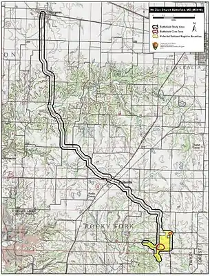 Map of Mount Zion Church Battlefield core and study areas by the American Battlefield Protection Program.
