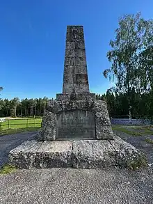 A stone war memorial located upon a hill overlooking the Battle of Oravais battlefield