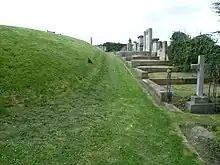 The battle site is now in East Lothian. The battle took place most probably in the cultivated ground 1⁄2 mi (800 m) south-east of Inveresk Church, just to the south of the main East Coast railway line. There are two vantage points for viewing the ground. Fa'side Castle above the village of Wallyford was just behind the English position, and with the aid of binoculars, a visitor can get a good view of the battle area though the Scottish position is now obscured by buildings. The best impression of their position is obtained from the golf course west of the River Esk and just off the B6415 road. The Scottish centre occupied ground a few yards west of the clubhouse. The Inveresk eminence, an important tactical feature at the time of the battle, is now built over, but from it, a visitor can get down to the Esk and walk for some way along the bank. The walk gives a further idea of a part of the Scottish position, but the town of Musselburgh now completely covers the left of the line.[47] The battlefield was added to the Inventory of Historic Battlefields in Scotland in 2011.[48]