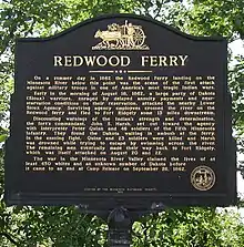 The Battle of Redwood Ferry took place on August 18, 1862, on the first day of the Dakota War of 1862. A United States Army company responding to the Dakota attack at the Lower Sioux Agency from Fort Ridgeley was ambushed and defeated at Redwood Ferry.