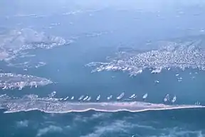 In the Allied fleet, the Athenians were on the left, and on the right were probably the Spartans (although Diodorus says it was the Megareans and Aeginetians); the other contingents were in the center.[96][97] The Allied fleet probably formed into two ranks, since the straits would have been too narrow for a single line of ships.[98] Herodotus has the Allied fleet in a line running north–south, probably with the northern flank off the coast of modern-day Saint George's Islet (Ayios Georgis), and the southern flank off the coast of Cape Vavari (part of Salamis).[99] Diodorus suggests the Allied fleet was aligned east–west, spanning the straits between Salamis and Mount Aigaleo; however, it is unlikely that the Allies would have rested one of their flanks against Persian occupied territory.[99]