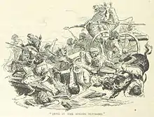 A battle between British and Sikh forces, possibly Sobraon, 10 February 1846.