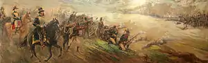 Through a path opened specifically for this operation, Cabañas attacked the enemy at their flank. Colonel José Machain moved to the side to repel them, but was surrounded by Paraguayan cavalry and forced to surrender.[2] Therefore, Belgrano left only a few men in a defensive position and marched to help Machain. Commanding the defenders at the river crossing was major Celestino Vidal, who was left almost blind by cannon fire.