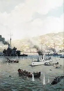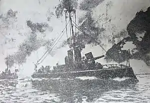 Romanian gunboats providing fire support for the Turtucaia garrison