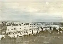 Unable to capture Warsaw by a frontal assault, von Diebitsch devised a plan to outflank it and enter the city from the west.[9] In early 1831 he sent his forces upstream on the Vistula, where the Russian divisions were to cross the river and head back north, towards Warsaw.[9] The new plan was thwarted by the Polish defence in three successive battles around Wawer, Dębe Wielkie and Iganie.[9] The Russians withdrew towards Siedlce,[9] where von Diebitsch fell ill and died of cholera.[10][note 2]