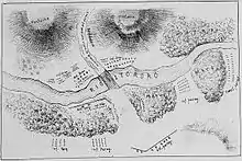 The Paraguayan army was commanded by general Bernardino Caballero, with a force of five to six thousand men, divided into sixteen infantry battalions, six cavalry regiments, and twelve guns. In command of the infantry was lieutenant colonel Germano Serrano, the cavalry was divided into two wings under the command of colonel Valois Rivarola and major Juan Lanson respectively. At the top of the hill, just beyond the bridge over the creek was the artillery, commanded by major Moreno.