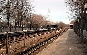 June 2006 view of the platforms of Baychester Avenue station towards the canopies from the Dyre Avenue-bound platform