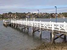 The Bayview Park reserve, along with the wharf, was opened in 1980.[1] Ferry services to the wharf were mostly run by private ventures, with Matilda Cruises operating its Darling Harbour–Homebush Bay service to the wharf until October 2005.[9] Palm Beach Ferries replaced Matilda Cruises services to the wharf afterwards with their new Darling Harbour–Cape Cabarita and Bayview Park service,[10] though decommissioned the service altogether a year later, after it "failed to attract sufficient patronage to be economically viable."[9] In September 2006, after requests from the constituents of Drummoyne, and its member Angela D'Amore in State Parliament,[11] Sydney Ferries began servicing Bayview Park as part of its Parramatta River route, serving as a terminus on its own dedicated limited-stops and shuttle pattern on the route.[12][13] Sydney Ferries serviced the wharf for seven years.[14] In October 2013, despite a redevelopment of the wharf enlarging the size of the pontoon to house shelter and seating, Bayview Park was decommissioned from the Sydney Ferries network, alongside Balmain West, both due to low patronage.[15][16] In the last year of the service, Sydney Ferries saw a weekly average patronage of 28 passengers, compared to 870 weekly passengers at Cabarita, the closest ferry wharf to Bayview Park.[17] The wharf's closure was not without controversy, sparking a political row between the Minister for Transport Gladys Berejiklian and the Minister for Drummoyne John Sidoti.[15][18][19]