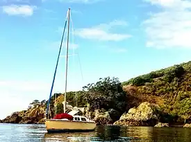 ![]() Beachcomber 6.5 at anchor off Tiritiri Matangi Island, Hauraki Gulf. | |