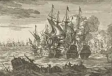 England and France were at war from 1792 to 1802 in the French Revolutionary Wars, and after a brief period of peace, returned to war in 1803 with the Napoleonic Wars. By 1805, tensions between the British and French were at their highest pitch, and many Britons feared an imminent invasion by the French.[21] Beachy Head was considered a likely beachhead where soldiers might land in the anticipated French invasion of England,[24] and British soldiers were stationed at Beachy Head as part of the British countermeasures.[21] The 1690 Battle of Beachy Head, in which the English navy was defeated by the French, was often discussed in eighteenth century histories of invasion.[5] Beachy Head as a location, therefore, called France to mind as a threat.[25]