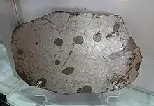 The Bear Creek meteorite, formerly known as the Colorado meteorite, is an octahedrite meteorite that was found in 1866 in Jefferson County, Colorado, United States. It has a mass of 226.7 kg (500 lb) and average dimensions of 350 mm × 250 mm × 11 mm (13.78 in × 9.84 in × 0.43 in).[1][2]