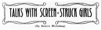 - 1 2 Michelena, Beatriz (May 14, 1916). "Talks with Screen-struck Girls". Prescott Journal-Miner. p. 2. Retrieved April 13, 2010.