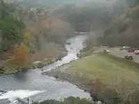 Built on the site of an old Choctaw settlement, Beavers Bend State Park was named after John T. Beavers, a Choctaw intermarried citizen. The "bend" in the park's name refers to an area of the park where a portion of Mountain Fork River meanders sharply, making an almost 180-degree turn. This area is commonly known as the River Bend, and is a popular area for trout fishing, canoe rentals, and swimming. Also in the River Bend area is the Broken Bow Hydroelectric Plant, which generates energy from the waters of Broken Bow Lake.