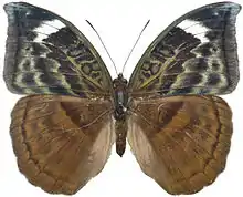 Bebearia partita, the falcate forester, is a butterfly in the family Nymphalidae. It is found in Cameroon, the Republic of the Congo, the Democratic Republic of the Congo (Mongala, Uele, Ituri, north Kivu, Tshopo, Equateur, Kinshasa, Cataractes, Kwango, Sankuru and Lualaba) and Uganda (Semuliki National Park and Toro).[2] The habitat consists of forests.