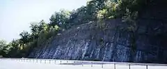 ![]() A road cut of an anticline near Kingston, New York. The bottom layer is the Becraft Formation. | |