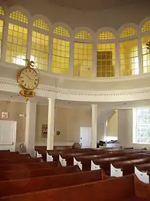 The Elijah Stearns Mansion is located in the heart of Bedford, Massachusetts' Historic District and across from Wilson Park at 4 Great Road. Built by Stearns around 1800, it is a fine example of Federal architecture, which features brick ends, four chimneys and a doorway arched in glass and wrought iron. A carriage house is attached to the main house, and, until 1895, a structure which was known as The Boston Cash Store also resided on the property. It was the first store in the village at the time. It also became the first post office for the town when Elijah Stearns was appointed postmaster in 1825. Later, in 1867, the building became the Bedford Public Library. The building which housed the store, post office, and library has since been moved to 22 Loomis Street.[13] The home is part of the Bedford Center Historic District which was listed on the National Register of Historic Places in 1977.[14]