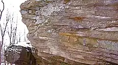 The Bedford Shale of Michigan is a light gray[13][14] or bluish-light gray in color.[15][lower-alpha 2] It is a silty shale,[15] siltier and sandier in its upper part.[14] The boundary with the Berea Sandstone exhibits thin veins ("stringers") of sandstone, indicating erosion of the Bedford Shale which was filled in later by sand.[17]