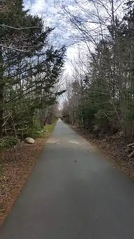 The rail line the trail follows now was built by Halifax and South Western Railway (H&SW) in 1904 to service towns along the South Shore. In 1906, H&SW merged with Canadian Northern Railway and in 1918, facing bankruptcy, was acquired by the federal government and placed under the control of the newly formed Canadian National Railways (CN). In 1969, CN ended passenger service along the line. In 1993, the tracks along which the trail runs today were abandoned[1] and in 1997, the property was given to the provincial Department of Natural Resources at no cost.[2]