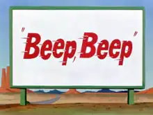 Beep, Beep is a 1952 Warner Bros. Merrie Melodies series directed by Chuck Jones.[1] The short was released on May 24, 1952, and stars Wile E. Coyote and the Road Runner.[2] The cartoon is named after the sound the Road Runner makes, which is also known as "Meep, meep".